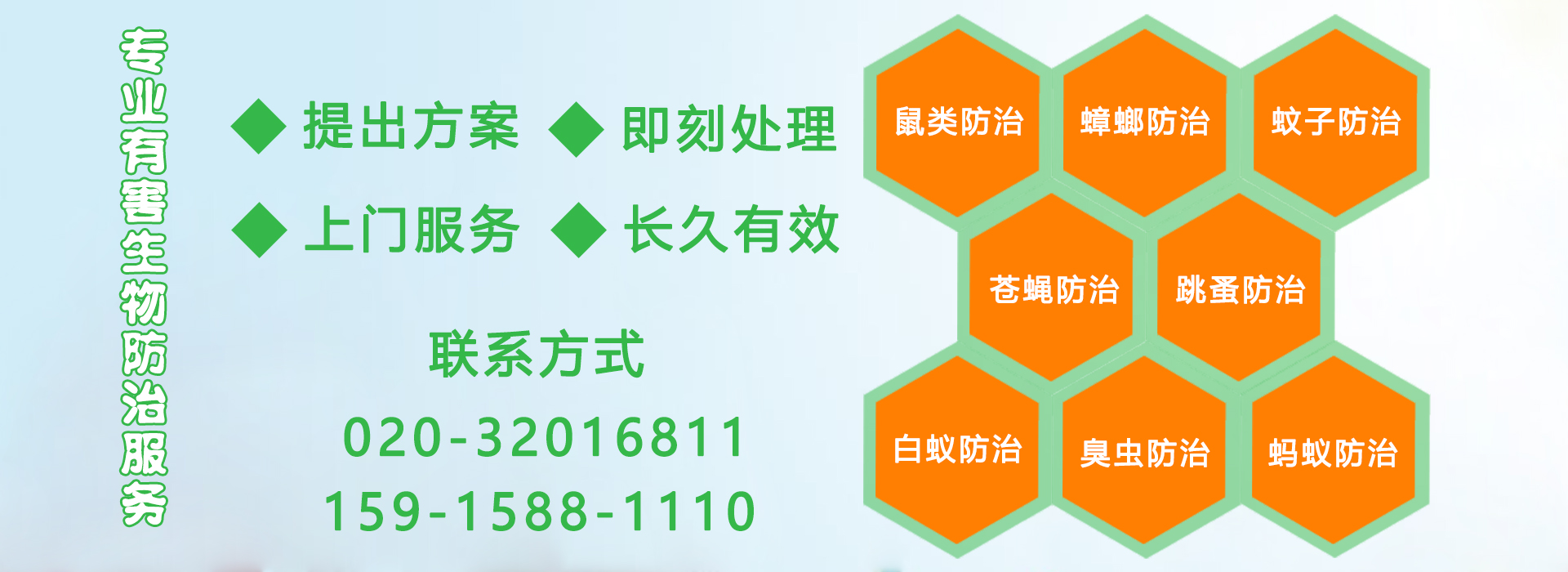 "億康"承接廣東除八害項目:鼠類、蟑螂、蚊子、蒼蠅、跳蚤、白蟻、臭蟲、螞蟻預防及治理,除甲醛及檢測、室內空氣檢測及治理等服務。